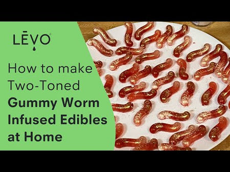 • Use the silicone divider with different flavors of gummy mix to create two-toned gummies. Half a bag of LEVO gummy mix will fill two trays.